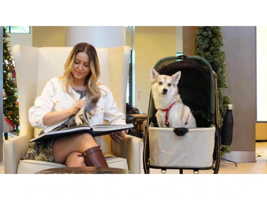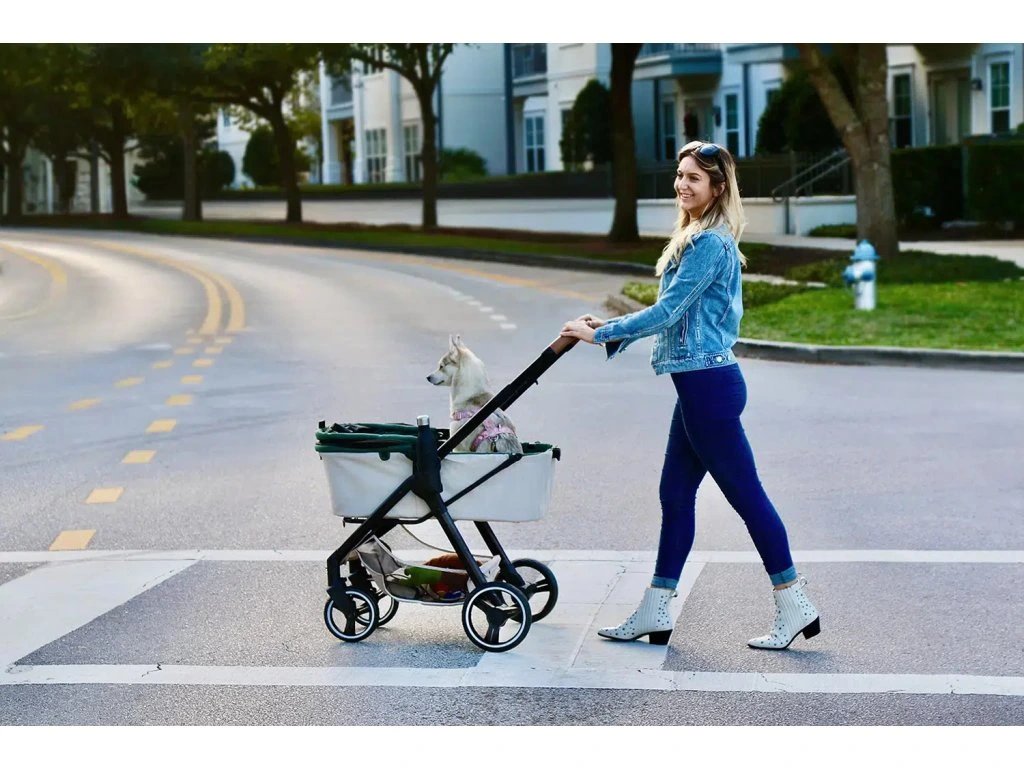 Kočárky pro psy Ibiyaya Retro Luxe mají elegantní kabinu s prostorným oboustranným otevíráním, které zapínáte na magnet, nikoli na zip.